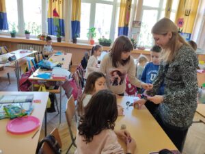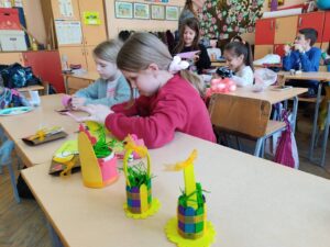 Направљене производе ђаци ће продавати на Васкршњем базару који ће бити одржан 6. априла 2023. са почетком у 12 и 30 часова у Четвртој школи.