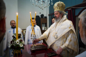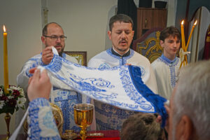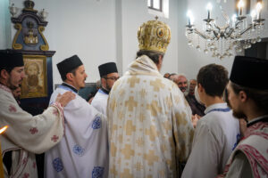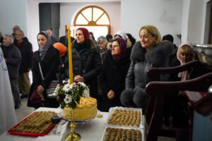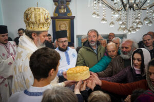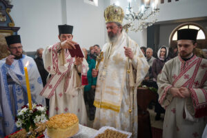 Након Свете Литургије, Владика Исихије је благословио и преломио славски колач са свештенством и верним народом и честитао славу свима, који Васкрсење Лазарево прослављају у својим домовима.