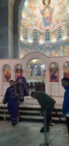 Његово Преосвештенство Епископ ваљевски Г. Исихије служио је јутрење Великог петка у Храму Васкрсења Христовог са свештенослужитељима храма и молитвено учешће више верника. Према древној богослужбеној пракси, током овог богослужења чита се дванаест Страсних јеванђеља, у којима су описани последњи сати живота на земљи Господа Христа. Владика Исихије је прочитао прво и дванаесто јеванђеље, док су остала читали свештеници Саборног храма, према редоследу по старини.