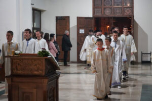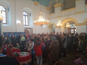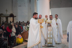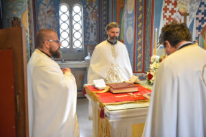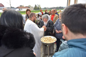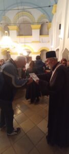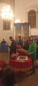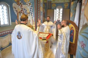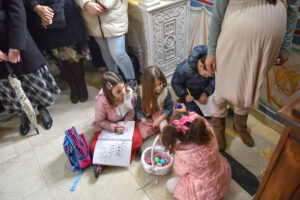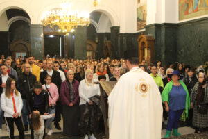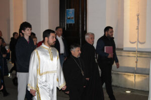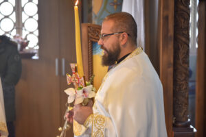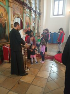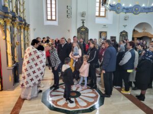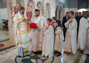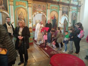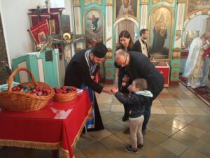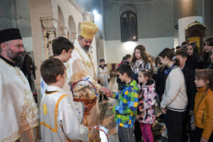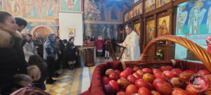 На Светој Литургији у Храму Васкрсења велики број верника је примио Свету тајну причешћа. Све учеснике сабрања братство је даривало васкршњим јајима, док је Владика Исихије оне најмлађе обрадовао чоколадним јајима и зекама.