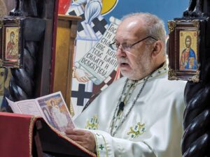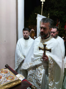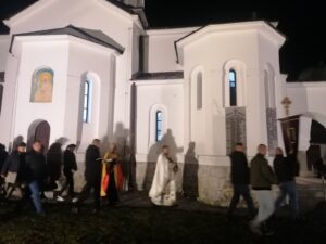 Васкршњу посланицу Патријарха српског Г. Порфирија и свих архијереја Српске Православне Цркве је прочитао протонамесник Драган Јаковљевић. Уз радосни поздрав Празника над празницима „Христос васкрсе“, посланица српских аријереја доноси појашњење величанствености данашњег дана, у коме је крсним страдањем Сина Божјег побеђена смрт, затим значаја вере у Христа, као нечега што даје смисао нашим животима више од било чега што се може створити. Као чувар Косовског завета, СПЦ и овога пута подсећа верни народ да умножи молитве за очување Косова и Метохије, уз разумевање и заједнички живот са албанским народом. Братски сукоб који, нажалост, улази у своју другу годину трајања на територији Украјине, такође је повод да се узнесу молитве Васкрслом Господу да што пре доносе мир, једна је од порука овогодишње Васкршње посланице СПЦ.