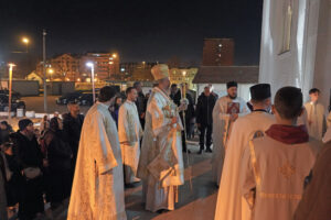 Владика Исихије служио поноћну Васкршњу Литургију у Саборном храму