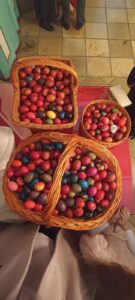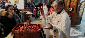 На Светој Литургији у Покровском храму мноштво верника је примило Свету тајну причешћа, а на крају сабрања свештено братство је све даривало васкршњим јајима.