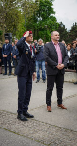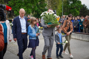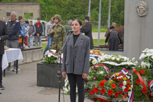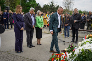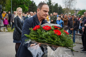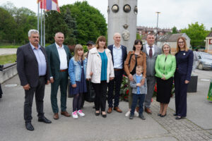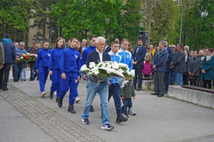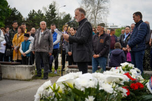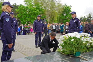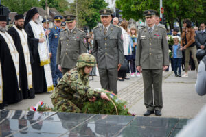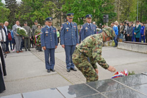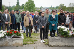 Одавање почасти пуковнику Миленку Павловићу настављено је крај спомен- обележја подигнутом у селу Бујачић на месту пада авиона.
