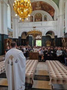 У 17 часова порту Цркве Силаска Светог Духа на апостоле испунио је велики број верног народа, првенствено средњошколске деце, са тугом и болом у души и очима, са молитвом Васкрслом Господу за душе свих невино настрадалих. Поменом је началствовао старешина Цркве Силаска Светог Духа на апостоле, протојереј-ставрофор Дарко Павловић, уз саслужење свештенства овога храма.