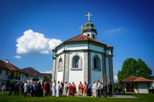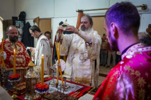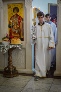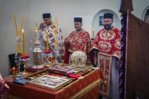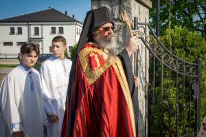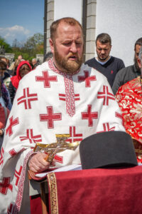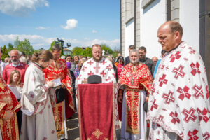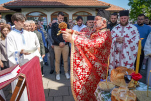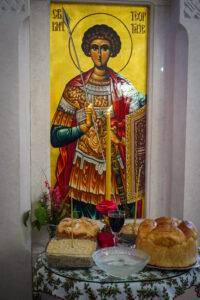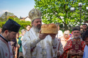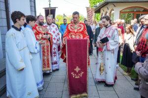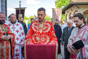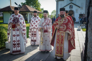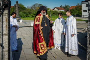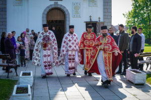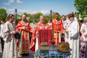 Након Свете Литургије, начињен је литијски опход и одслужена молитва за упокојене парохијане. Испред храма, Владика Исихије је преломио славски колач, благословивши све свечаре и учеснике сабрања да им Свети Георгије буде окрепљење и надахнуће.