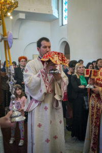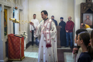 Да би се сачувала на крштењу добијена благодат Божја, потребно је да долазимо на Свете Литургије и причешћујемо се, али и да чинимо напор да бисмо били бољи од себе, објаснио је он, поткрепивши речима Његове Светости Патријарха српског Г. Порфирија, који је ових дана више пута напоменуо да је неопходно да радимо на свом бољитку, који чини добро ближњима које волимо.