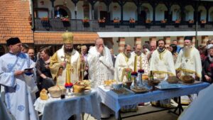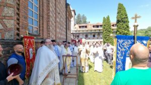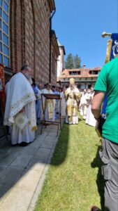 - Прославља се Бог међу нама преко Својих светих. Радујмо се у Господу, живимо васкрслом силом Христовом! Немојмо да се бојимо, јер Господ је са нама! Имамо Њега, имамо свете Његове, имамо молитву Свете Цркве, имамо једни друге и Господ ће помоћи да одолимо, ма како тешко било. Србија је саткана од благодатног ткива, орошена крвљу светих мученика , сузама светих монаха, исповедника и покајника… уздасима нашег рода, који је прошао многе голготе. Али, као Феникс из пепела васкрсава српски народ- рекао је Владика Силуан.