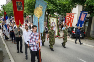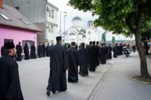 Свети Владико Николаје, моли Бога за нас, недостојне слуге твоје! Сагрешисмо, безаконовасмо и неправедно поступасмо пред Господом. Нити сачувасмо, нити извршисмо што нам је заповедио. На данашњи дан, браћо и сестре, Црква наша закључује празновање свеславног Васкрсења Христовог- Пасхе Господње. Господ Богочовек васкрснуо је из мртвих у Својој људској природи и осветио сав људски род, ослободивши нас од робовања греху, ђаволу и смрти. Четрдесет дана боравио је у Свом васкрслом људском телу са свим ученицима и многим другим који су поверовали, јављајући им се и говорећи о Царству Божјем, а потом се, обећавши да је с нама у све дане до свршетка века и да ће нам послати од Оца Духа Светога, Који ће нас утврдити у истини, вазнео на небо. Потом су, примивши Духа Светога, Свети апостоли, ученици Христови, у Господу постали премудри и са благодаћу Божјом и са својом вољом која је сагласна била благодати, просветлили сву васељену, цео свет. Наследник апостола у ове дане богомудри у Духу Светоме, просветитељ наш, јавља нам се управо наш Свети Владика Николај. За њега сведочи његов у Господу сатрудник и савременик Свети Ава Јустин Ћелијски, говорећи:“Од Светога Саве до данашњег дана, наше православље није имало речитијег и моћнијег исповедника од Преосвећеног Николаја.“ Наш Свети Владика не пише, он открива. Заиста, Владика Николај јесте вечни вођа рода српског. Он је наш заступник пред Богом, наш молитвеник и учитељљ нашег рода- учитељ покајања, учитељ благочешћа, притом и учитељ правоживља, јер није довољно имати само праву веру, него је потребно и живети сходно тој вери. Тиме се највише истицао Владика Николај, који је пре свега својим примером очитавао и појашњавао Свето јеванђеље, а потом и многим богомудрим делима књижевним, златоустим проповедима, мудрим теолошким списима, народним благочестивим песмама и на многе друге начине нам је надахнуто говорио о Спаситељу Христу, о Његовом оваплоћењу, о домостроју нашег спасења, васкрсењу и нашем животу у Христу. Сам Владика нас учи за нашу државу да то није обична држава. Вели он:“Српску државу основали су светитељи. Не пирати, не разбојници, нити какви вукодлаци, него српски свеци. Тај факат да су свеци основали нашу државу представља један снажан печат уроњен дубоко у нашу историју и нашу културу. Сви ми кажемо да смо заветни народ и да живимо по Светосавском завету и по завету Лазаревом, Завету косовском. То су само објашњења и продубљења завета Господа нашег Исуса Христа, Новог завета, Светог јеванђеља, благе вести коју нам је Он донео Собом. Владика Николај је у своје време, пре читавог једног века, био сведок и плакао је и борио се против страшног отпадија у нашем народу. Те безбожне струје са запада правиле су ковитлац, смућивале и збуњивале народ по коме је црквена лађа пловила као по немирном мору. На челу те лађе био је Владика Николај са својим огромним духовним ауторитетом и са влашћу коју је имао од преданости Господу и благодати Божје која је била сва у њему. Нажалост та смућења трају и данас и она су вероватно тековина људске „цивилизације“ и „културе“, која је отпала од Бога и одрекла се Бога многоструко. Одрекли смо се Господа још у нашим прародитељима Адаму и Еви, а онда у свакој епохи и сваком поколењу остало је још одрицања и одрицања. Људски род био је немоћан да се ишчупа из робовањ
