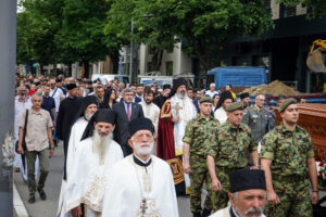 - Молимо га да данас својим чудотворним, нетљеним и светим моштима походи нашу страдалну српску земљу. Да нам подари освећење и исцељење и утврђење у врлинама у којима је живео- вери, нади и љубави- поручио је Владика Исихије, испративши мошти Лелићког Златоуста у шпалиру свештенства и верног народа, уз молитву да нас пред престолом Божјим заступа и грађанима Београда донесе утеху у тешким и радост у долазеђим данима.