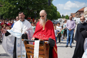 - Каква част је дата човеку… Побеђује смрт са Господом Христом. Побеђује ђавола са Њим, побеђује грехе. Ето чистог јеванђељског човека- човека вечног! Браћо и сестре, сваки човек је бесмртно биће. Бићемо заједно на оном свету, у вечности. Стога, љубимо једни друге! Чинимо добра и мислимо добро једни другима! Не завидимо, не пакостимо и никакве грехе да не чинимо! Господ је постао човек да покаже да човек може живети без греха кад хоће. Као хришћани, позвани смо да живимо на небесима, јер тамо се Господ вазнесе телом- поручио је прота Драгомир Јовановић, истакавши да је сваки човек позван да освети цело своје биће, уз молитву Господу на свом животном путу.
