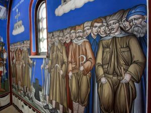 Испод блата и крви, прљавштине и болести, оруђа за пољопривреду, намењеног доношењу хране која је живот, а овде прекованог у низ крстова на којима су разапињани наши преци, са којих су сишли у смрт, што нам показују и фреске на зидовима овога храма, сијала је и сија и сијаће светлост Божија.