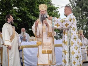 Након чина освећења спомен-капеле, евхаристијске благодарности и молитве за упокојене, Патријарх Порфирије је пред великим бројем благочестивих верника, окупљених за помен и славу Новомученика Српских, упутио поучне и благодатне речи: