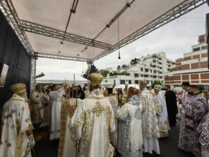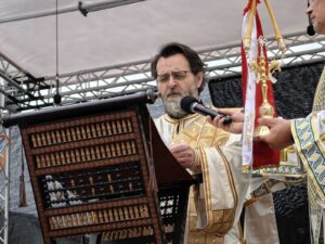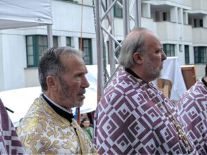 Саслуживали су високопреосвећена и преосвећена господа архијереји немачки и средњевропски Исaк из Антиохијске Патријаршије, Епископ бeчки и аустријски Алексије из Московске Патријаршије, немачки и централно-северноевропски Серафим из Румунске Патријаршије, прашки Михаил из Православне Цркве чешких земаља и Словачке, дабробосански Хризостом, црногорско-приморски Јоаникије, браничевски Игнатије, брегалнички Марко, аустријско-швајцарски Андреј, осечкопољски и барањски Херувим, ваљевски Исихије, шабачки Јеротеј и хвостански Алексеј. Том приликом, патријарх Порфирије је беседио: