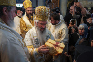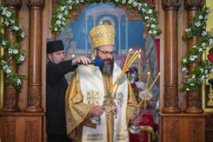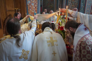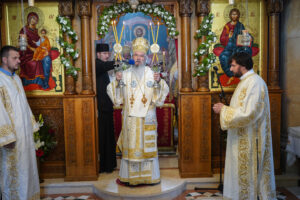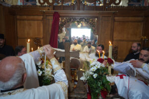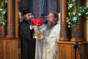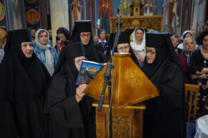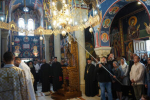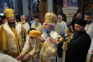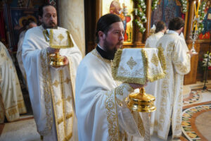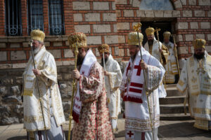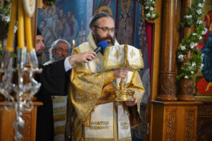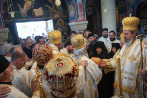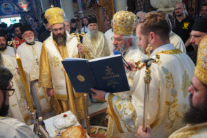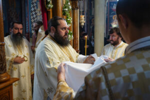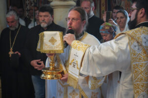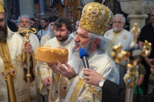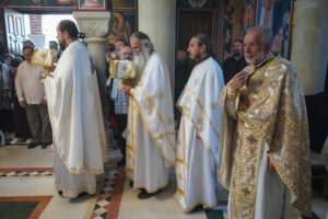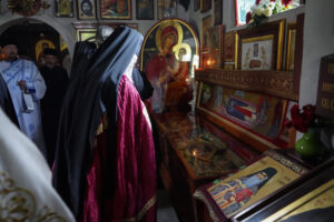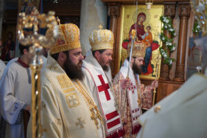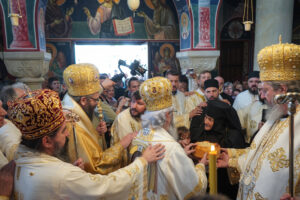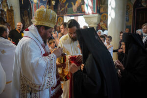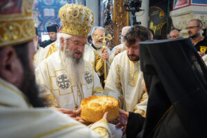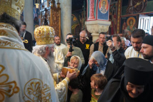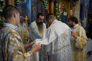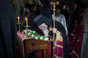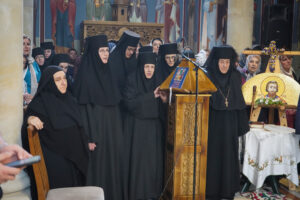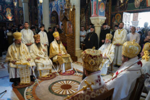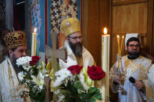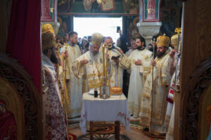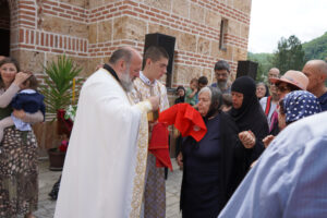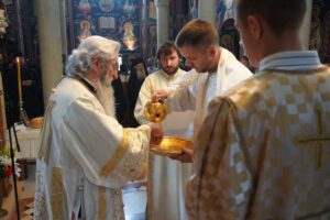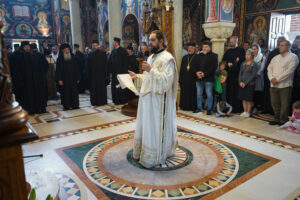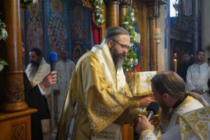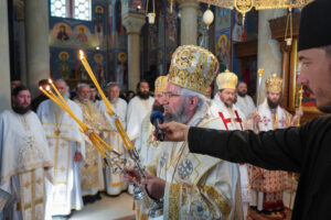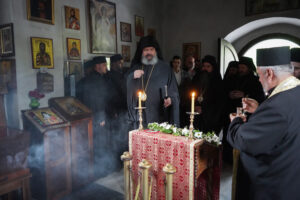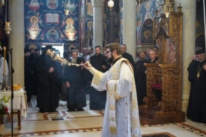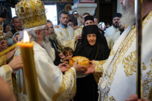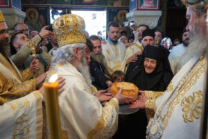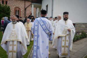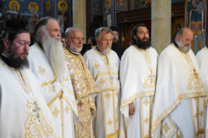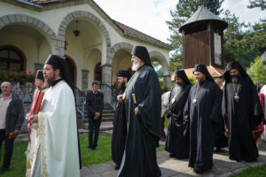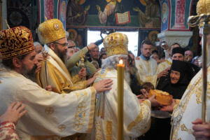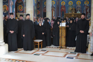 Након Свете Литургије, архијереји су преломили славски колач са ћелијским сестринством и верним народом, који је дошао да са њима прослави празник великог Оца Српске Цркве савременог доба.