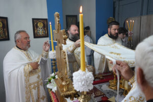 Молећи заступништво свих светих, посебно Светих апостола, молећи Пресвету Богородицу са свима светима, ми се окупљамо на Светој Литургији и прослављамо Бога. Причешћујемо се и сами се уподобљујемо Господу, свако по својој мери, и сами постајемо свети- истакао је Владика Исихије, поткрепивши своју беседу речима Светог апостола Павла, који све сабране на Литургијама назива светима.