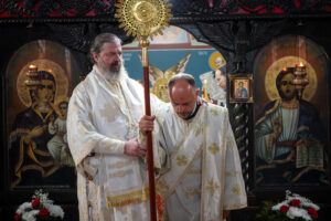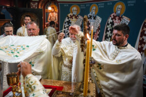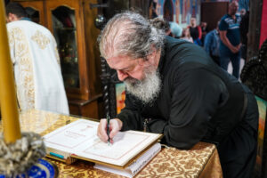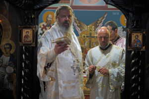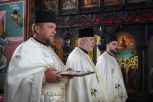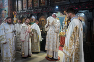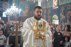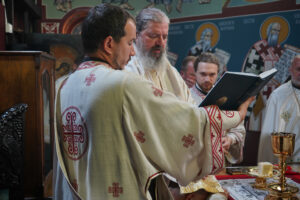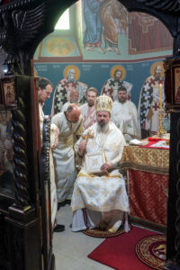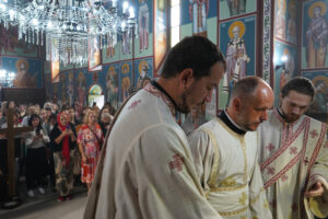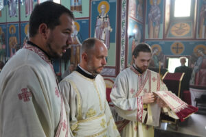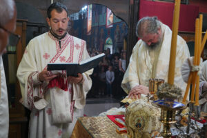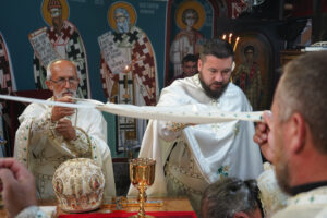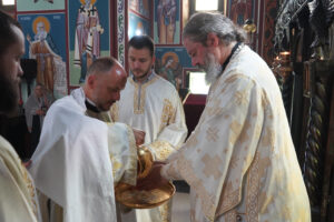 Радост данашњег молитвеног сабрања у Храму Вазнесења Господњег у Осечини умножена је рукоположењем у чин ђакона Милована Стевановића, дугогодишњег наставника веронауке у школама Подгорине, јединственом у Србији по стопроцентном одзиву ђака од њеног повратка у наставу основних и средњих школа. На крају богослужења, Владика Исихије је честитао оцу Миловану Стевановићу и благословио све окупљене у осечанској светињи.
