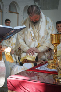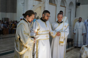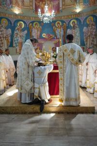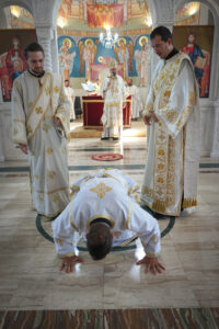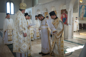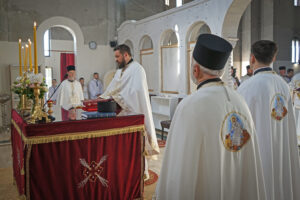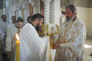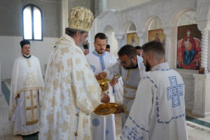 Посебно свечани тренутак данашњег литургијског сабрања било је рукоположење у чин ђакона вероучитеља и појца Немање Арсеновића. Архипастирску грамату, којом се обнародује ова владичанска одлука, прочитао је ђакон Александар Панић. Благосиљајући оца Немању Арсеновића, Владика Исихије му је пожелео да му ступање у клир буде подстицај да служи Господу и ближњима.