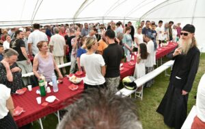 У празничној беседи отац Андреј је истакао лик и дело и важност Светих апостола. Након трократног опхода пререзан је славски колач, а затим је уследила трпеза љубави коју је припремило братство рибничке светиње.