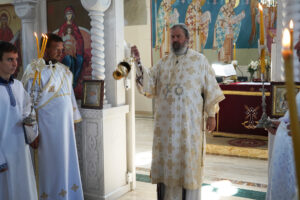 Након Свете Литургије, Владика Исихије је преломио славски колач са чланицама Кола српских сестара, предвођених председницом Драганом Недељковић. Честитајући им славу, Владика Исихије је указао част жртви, коју сестре приносе својим молитвама и трудом да помогну потребитима.