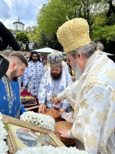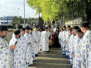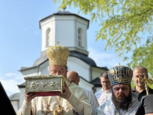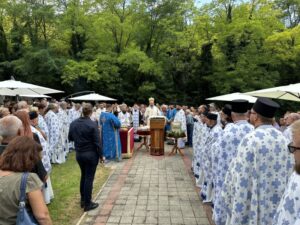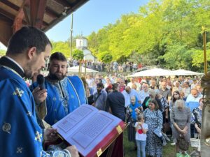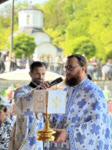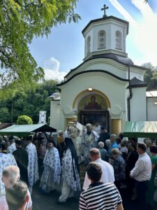 Данас овде имамо присуство у нетљеним моштима великих наших савремених Светитеља, Светог владике Николаја Жичког и Светог авве Јустина Ћелијског, који су сами најдивнији и најсветлији сведоци Преображења Господњег. Они су се удостојили да заједно са тројицом најближих апостола стоје мислено и умно на гори Таворској и да созерцавају Божанску светлост и да њу проповедају нашем роду. Знамо да је Свети владика Николај био велики учитељ и духовни вођа нашег рода, да је походио и ове крајеве, да је управо у овој светињи 1936. одржао Богомољачки сабор. Сабор који је одржавао по свим крајевима нашег рода где је учио народ о Таворској светлости, где га је учио уподобљавању ка Господу и призиву ка светлости. Сви смо призвани и свима нам је Господ дао могућност да будемо свети. Нека бисмо молитвама ове двојице великана и стубова наше побожности и ослонаца наших у овим тешким временима и ми созерцавали светлост Божију. Да знамо да је на Литургијама та светлост свуда око нас, да извире из Свете Литургије где се сабиремо у име Божије и да га прослављамо и овде и у вечности, нашег Бога вечног у Тројици – Оца и Сина и Светога Духа! Амин.