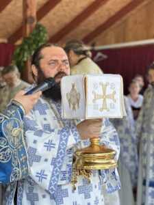 – Драги Владико, у Христу брате и саслужитељу, поштовани народе, нека свима буде на здравље и на спасење овај данашњи дан, празник Преображења Господњег у овој нашој гори Таворској где осетисмо пуноћу благодати Божије и пуноћу љубави загрљаја Христовог. Данас је свима срце било испуњено јер међу нама су наши дивни и велики Светитељи, Свети владика Николај Жички и Свети авва Јустин. То је велики благослов за нашу Епархију, за наш народ. Да нас они увек руководе у правцу Царства Небеског, у правцу изграђивања слоге и јединства, јер ће то омеђити останак и опстанак нашег народа на овим просторима. За то сам неизмерно благодаран нашем Владици Исихију, што нам је омогућио да можемо имати ове благослове у нашој Епархији и да можемо са нашим дивним Светитељима овде да делимо тугу, радост и да кроз благословене дарове задобијамо Царство Небеско. Нека њихов пут буде и наш пут, да њихово откровење таворске светлости буде откровење нашем народу да и поред таме и околности у којима сви живимо имамо на уму да је на крају путу управо светлост таворска. Захвалио бих се свим људима који су помогли у организацији овог нашег Преображењског сабора, Општини Ердут, гастро екипи из Бијелог Брда и свима људима који нису штедили себе и дали свој допринос да ово наше сабрање јуче и данас може бити овако лепо и величанствено. Наравно да смо на почетку Свете Литургије за ревност коју је показао брат Немања произвели њега у чин чтеца. То је први степен свештеничке службе. Његова ревност заиста велика и познајем га откако сам дошао на чело ове Епархије. Када год сам кретао на неки крај Епархије, пролазећи покрај моста, он је био увек на исто време на истоме месту. Ишао је да буде први у храму, да би свештенику припремио оно што је потребно за служење Свете Божанске Литургије. Из тог разлога, и због многог делања које он и данас чини и твори, одлучили смо да га наградимо. Нека на томе не застане, него да се још више изграђује и буде још бољи и бољи на добро наше Свете Цркве и нашега народа.