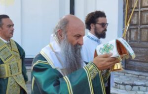 Нека би Господ дао, браћо и сестре, да се одазивамо увек на позив Божји, да се одазивамо на звона која ће куцати са звоника овога храма за вас, али позивати вас да се овде сабирате, било да сте дошли са Кајмакчалана, било из Крајина, из Хрватске, из Босне, или било одакле, или поникли овде још од времена Чарнојевића. Када буде куцало звоно, када буде звонило и позивало вас на свету Литургију, на свету молитву, то ће бити позив Господара који жени свога сина и све вас позива на свадбу. Ви се трудите колико је до вас да увек будете обучени у свадбено рухо, то значи у православну веру и то значи у молитву, у духовни труд. То значи у смирење и у покајање. Нека би Господ дао да тако буде, како би онда Царство Божје било реалност и чињеница у којој живимо сада и овде, и славимо Њега Једнога у Тројици, Бога Оца, и Сина, и Светога Духа, сада и увек и у векове векова. Амин.ˮ