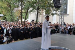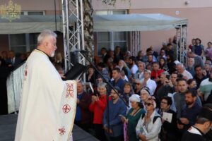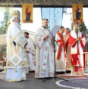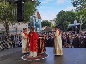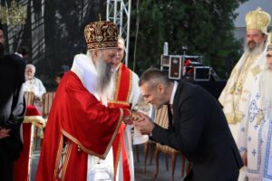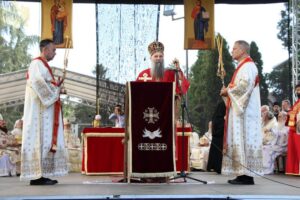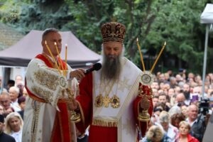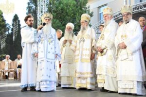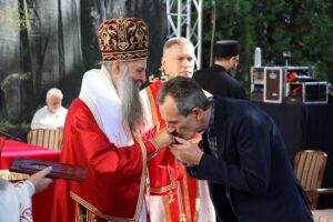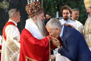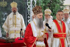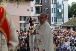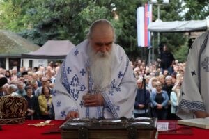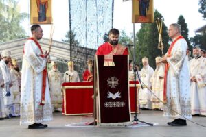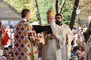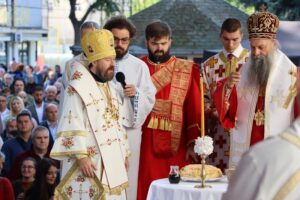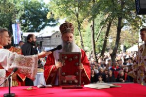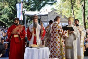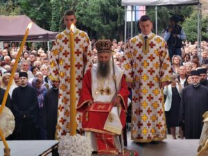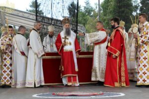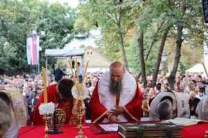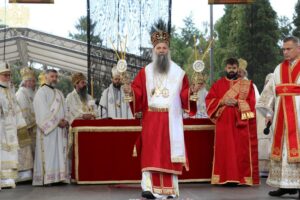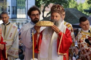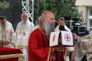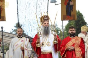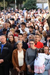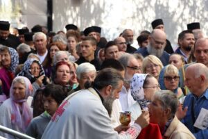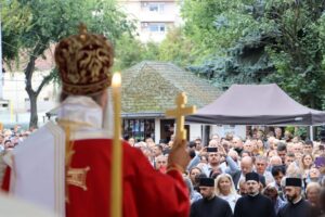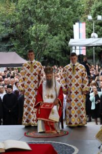 Данас, сабрани овде, слушамо реч Христову, а она је истинита, она је праведна. И у данашњем Јеванђељу које смо чули Господ нас упозорава да онај ко хоће да иде за Њим, када узме Крст свој и пође за Њим, не треба да очекује једноставан и лак живот него да онај који је узео Крст свој и пошао за Христом, будући да се определио за Јеванђеље Његово, за заповести Његове, будући да зна да заповести Христове откривају истинску природу људску, истинску природу нашу, будући да зна да заповести Божје говоре о томе шта је здрав човек, који живот треба да се труди да води да би живео здраво, то значи духовно – и када се определи за Јеванђеље Христово, за заповести Његове, Господ упозорава да свако мора да зна да ће то бити, у најмању руку, сметња онима који се опредељују за другу врсту закона, за друга правила живота, који бирају да живе по својој острашћеној вољи и по своме острашћеном срцу. Њима ће сметати сви они који хоће да посведоче Христа, јер им смета Христос. И неретко ће сматрати провокацијом наш труд да живимо јеванђелски, да живимо по православној вери, да тако хоћемо да уредимо живот у својим породицама, у своме граду, да тако хоћемо да учимо своју децу, да их васпитавамо у школама у складу са речју Христовом. Не због тога што је то наша идеологија и због тога што хоћемо друге да поробимо том идеологијом него управо због тога што знамо да је реч Христова истинита и спасоносна, што знамо да реч Христова записана у Јеванђељу открива здраву природу људску, открива исправан начин живота који нас води у проналажење смисла постојања овде на земљи и отвара путеве духовне радости. Али, истовремено, ти путеви су путеви спасења. Тим начином живота у Цркви Христовој, где су двоје и троје и где смо сви ми сабрани ту је и Господ. Јеванђелски начин живота, хришћански подвиг, јесте сусрет са Богом, али и сусрет са собом и са ближњим, са онаквима какви треба да будемо. И зато, браћо и сестре, када се трудимо да живимо по Јеванђељу, ми се трудимо и због спасења других и из љубави према другима и никада не сматрамо да смо бољи од других независно да ли су они изабрали другачији начин живота, чак и независно онда када нам се противе, чак и онда када је реч о нашим ближњима, како каже данас у Јеванђељу: Устаће отац на сина или син на оца, браћа на браћу и сестре на сестре, тојест биће и има их, знамо то и међу нашом браћом и сестрама, који су изабрали широк пут и хтели би мало да разводне реч Христову, хтели би да је релативизују. Понекад кажу: „Треба да модернизујемо реч Христову, реч Јеванђеља!ˮ, а то у пракси значи да је се одрекнемо, а ми, трудећи се да читавим својим бићем живимо речју Христовом, заповестима Његовим и, знајући да има оних којима то смета, јер им смета Христос, молимо се и за такве. Молимо се Богу, да нам Бог дâ вере и за њих, јер знамо и то је у Јеванђељу записано, у причи о оној четворици који верују Христу и својом вером приносе једнога који не верује и он бива исцељен вером ових верујућих. Знајући ону старозаветну причу, да тамо где има вере, макар и десет праведника у једном народу, ту је Господ и чува тај народ. Дакле, ми подвигом својим хоћемо да измолимо од Бога, да нам Бог дâ вере и за ону браћу и сестре којима вера недостаје или који се противе вери својих отаца и вери нашој, али Господ упозорава да ту никада не треба да дозволимо да наша духовност буде романтизам и с