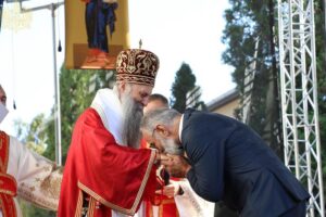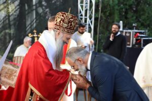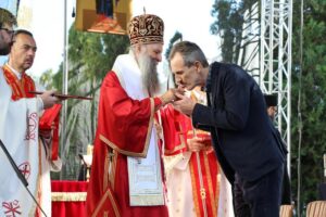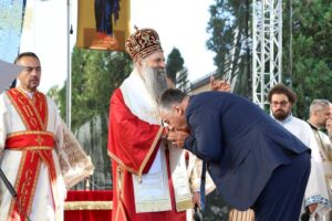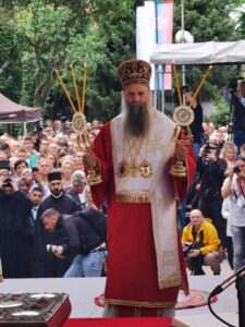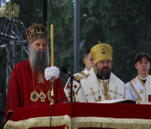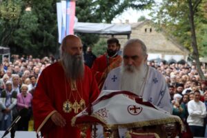 Ово наше сабрање, браћо и сестре, и молитве светих новомученика бачких и светога Иринеја, епископа бачког, које нас сабирају, показују да оно семе и оно предање које смо добили од наших отаца је итекако живо и да је то најважнија вредност или, боље рећи, контекст и амбијент у којем живимо своју свакодневицу, пролазећи кроз разне подвиге, кроз разне феномене, али увек остајући оно што јесмо. Та наша православна вера коју је засадио Свети Сава, једампут за свагда, и определио наш народ да буде православан, да буде Христов, јесте нешто што је не само очувало наш народ, нешто што је помогло да опстанемо, да будемо оно што јесмо, него и онда када је било најтеже и најстрашније, та наша православна вера била је куцање нашег срца и наше дисање и наш поглед и наша мисао, и она је давала највредније духовне плодове и у најтежим временима. Зато, браћо и сестре, нека би Господ дао да увек будемо верни Њему и да имамо снаге да до краја изнесемо свој крст, да имамо заправо трпљење и стрпљење, јер свети Јован Златоуст каже: Стрпљење је мајка свих врлина и извор свакога добра. Дај Господе вере, љубави и наде свима нама, а нарочито дај мира нашој браћи на Косову и Метохији. Све вас молим, браћо и сестре, да свако од нас појединачно унесе у своје молитвено правило молитву за нашу браћу и сестре на Косову и Метохији, да им Бог дâ мира и да ми будемо увек спремни да носимо и делимо крст њихов, јер то је и наш крст. Али, да дâ мира и свим другим људима који живе на Косову и Метохији, а да – рекао сам то и синоћ и видим цитирали су – дâ разумевања и онима који имају силу и моћ и који неретко затварају очи на неправду, а понекад користе различите аршине, па једне гледају овако, а друге гледају онако. Сваки човек је икона Божја, сваком је потребан мир. Да Бог дâ и њима да учине све што могу да допринесу да сви људи на Косову и Метохији добију елементарни мир.