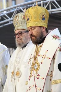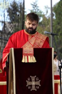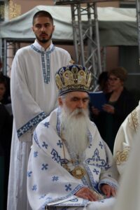 На светој архијерејској Литургији началствовао је Његова Светост Патријарх српски г. Порфирије. Светејшем Патријарху српском су саслуживали: Високопреосвећени Митрополит будимпештански и мађарски г. Иларион из Руске Православне Цркве, Преосвећена господа епископи сремски Василије, будимски Лукијан, банатски Никанор, бачки Иринеј, врањски Пахомије, шумадијски Јован, крушевачки Давид, осечкопољски и барањски Херувим, ваљевски Исихије, шабачки Јеротеј, мохачки Дамаскин, умировљени епископи Георгије и Филарет; јеромонах Харитон (Павлица), настојатељ Светоархангелског манастира у Ковиљу, архимандрит Василије (Костић), протојереј-ставрофор Мирко Шипка, умировљени свештеник, протојереј-ставрофор Миливој Мијатов, инспектор Богословијâ Српске Православне Цркве, протојереј-ставрофор Драги Вешковац, секретар Епархије крушевачке, јеромонах Андроник (Дунаев), протојереј Владан Симић, секретар Епархије бачке, протођакони Радомир Врућинић, Горан Ботошки, Иван Гашић и ђакон Мирослав Николић.
