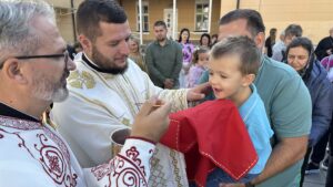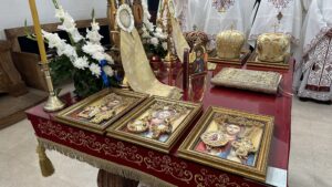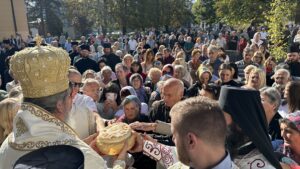 На крају Литургије освештани су принесени славски дарови, а потом је уследила трпеза љубави за све присутне.