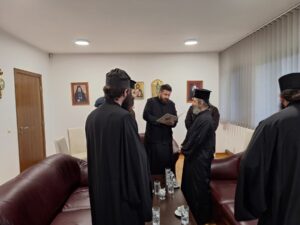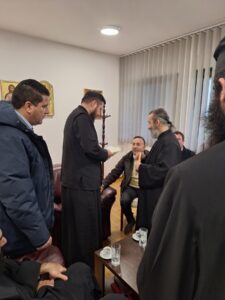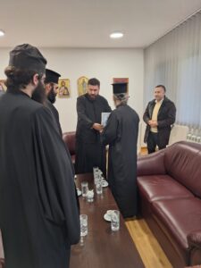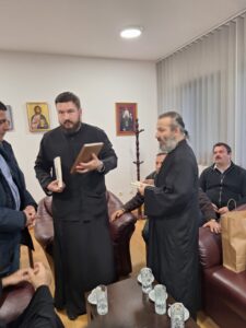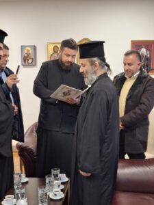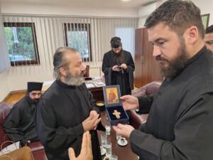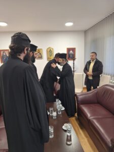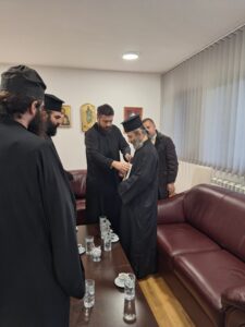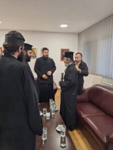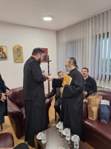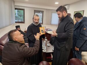 На празник Светог Јоаникија Великог, делегација свештеника и ђакона Епархије морфске Архиепископије Кипарске, по благослову Преосвећеног Епископа морфског Г. Неофита, посетила је Епархију ваљевску и поклонила се њеним светињама. У Владичанском двору свечано их је дочекао архијерејски заменик протонамесник Филип Јаковљевић са сарадницима. Будући да је међу кипарским верним народом култ Преподобног Оца Јустина Ћелијског одавно уврежен и широко распрострањен, Епископ Неофит упутио је пре извесног времена молбу Преосвећеном Епископу ваљевском Г. Исихију да им се честица моштију ћелијског богомудраца додели на радост и духовно окрепљење. У име оправдано одсутног Епископа Исихија, мошти и Архипастирску грамату уручио им је његов заменик протонамесник Филип Јаковљевић. Оцу Јустину пастири ове острвске земље редовно читају акатисте, а његова дела незаобилазна су литература богословима и свима који желе да више знају о православној вери. Гости са Кипра узвратили су благодарјем и пригодним даровима, уз позив да браћи из завичаја Оца Јустина ускоро узврате срдачним дочеком. Мошти Преподобног Оца Јустина Ћелијског биће доступне вернима на целивање у Храму Светог Георгија победоносца у Евриху.