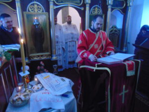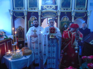 „ Постом и молитвом припремали смо се за дочек овог празника, али треба да наставимо са постом, молитвом и личним подвигом и за дочек празника Рођења Христовог-Божића. Да би истрајали у свему томе потребно је да упутимо молитве Господу да нам да снаге да истрајемо у молитви и посту. Браћо и сестре, наш циљ на земљи јесте да стекнемо добра дела све док смо живи овде на земљи, јер са стеченим добрим делима се једино улази у Царство Небеско. Сви знамо да је наше тело трулежно – пропадљиво, као и свака друга материја, али наша душа је нетрулежна, неуништива и она је вечна и вечно живи. Зато, живећи и радећи овде на земљи треба да водимо рачуна како стичемо овоземаљска блага, јер наша душа нити једе богаство нити пије вино. Она се једино храни нашим делима. Душу хранимо кад гладног нахранимо, кад неодевеног обучемо, кад сиромашнима милостињу учинимо илити болесне обиђемо. Једном речју, душу треба хранити врлинама хришћанским без којих спасења нема и то су дела за која ми треба да живимо. Знајте да су само три места на којима ми живимо. Прво место је овде на земљи, а остала два су Рај и пакао. Од нас и наших дела зависи где ћемо се настанити да живимо да ли у Рају или паклу, а Господ ће на основу дела наших и нас спровести у Рај или пакао….“, закључио је прота Небојша Миливојевић у празничној беседи.